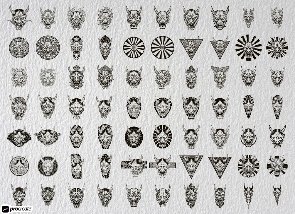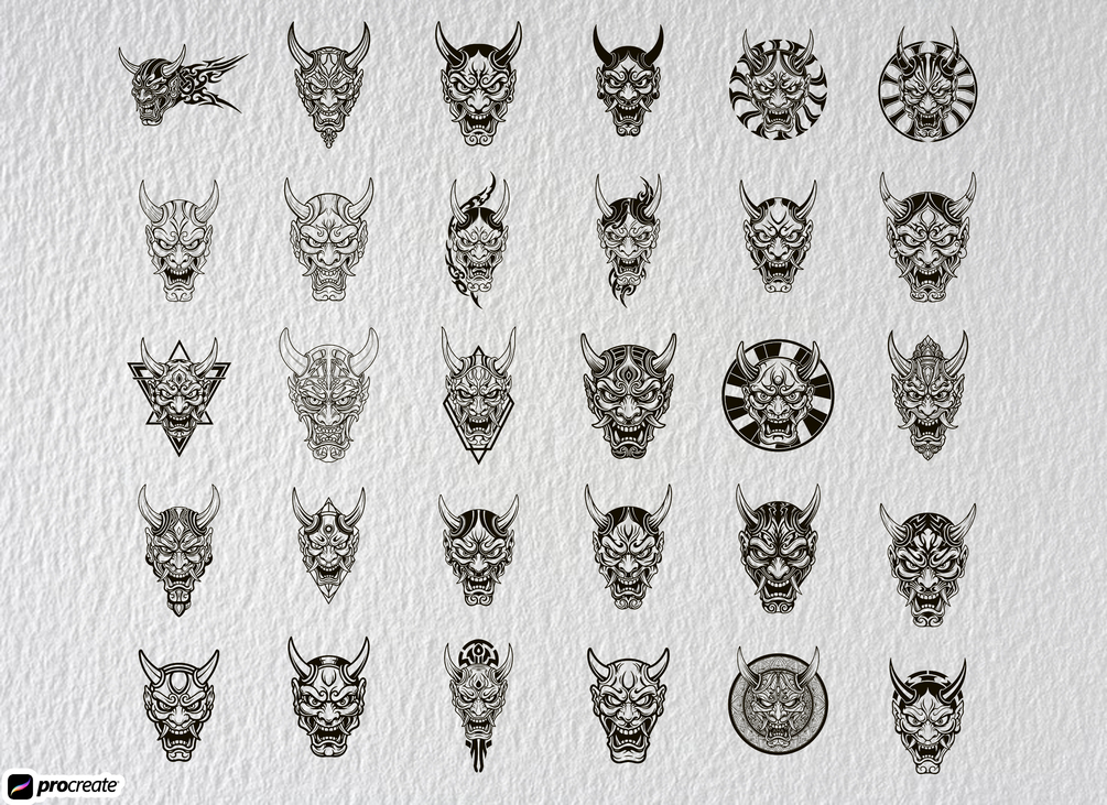 Are you a tattoo artist, digital illustrator, or creative designer seeking striking, fearsome, ready-to-use Oni Demon stamp brushes? Your search ends here! This powerful collection features over 300 meticulously crafted Oni and Hannya stamps inspired by authentic Irezumi Japanese tattoo art and Traditional Japanese folklore.