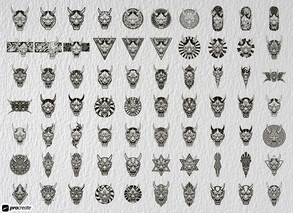 300+ Oni Demon Tattoo Stamps Procreate, Irezumi Japanese Tattoo Brushes, Traditional Hannya Mask Stencil, Asian Tattoo Flash, Commercial