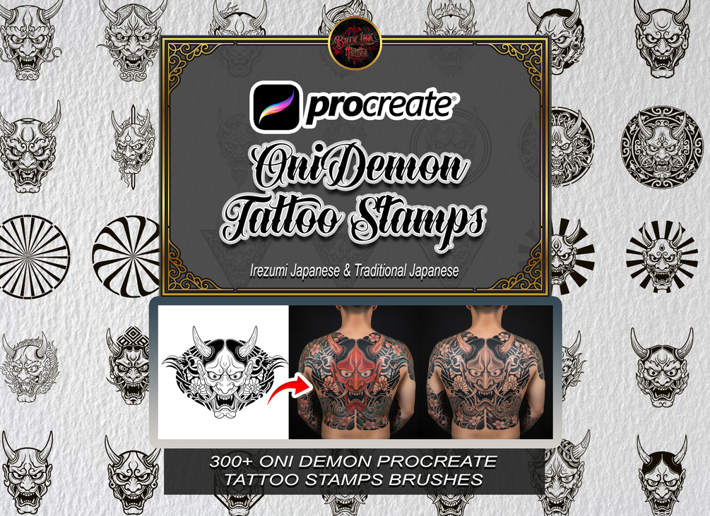 š¹ 300+ PREMIUM ONI DEMON TATTOO STAMP BRUSHES FOR PROCREATE š¹